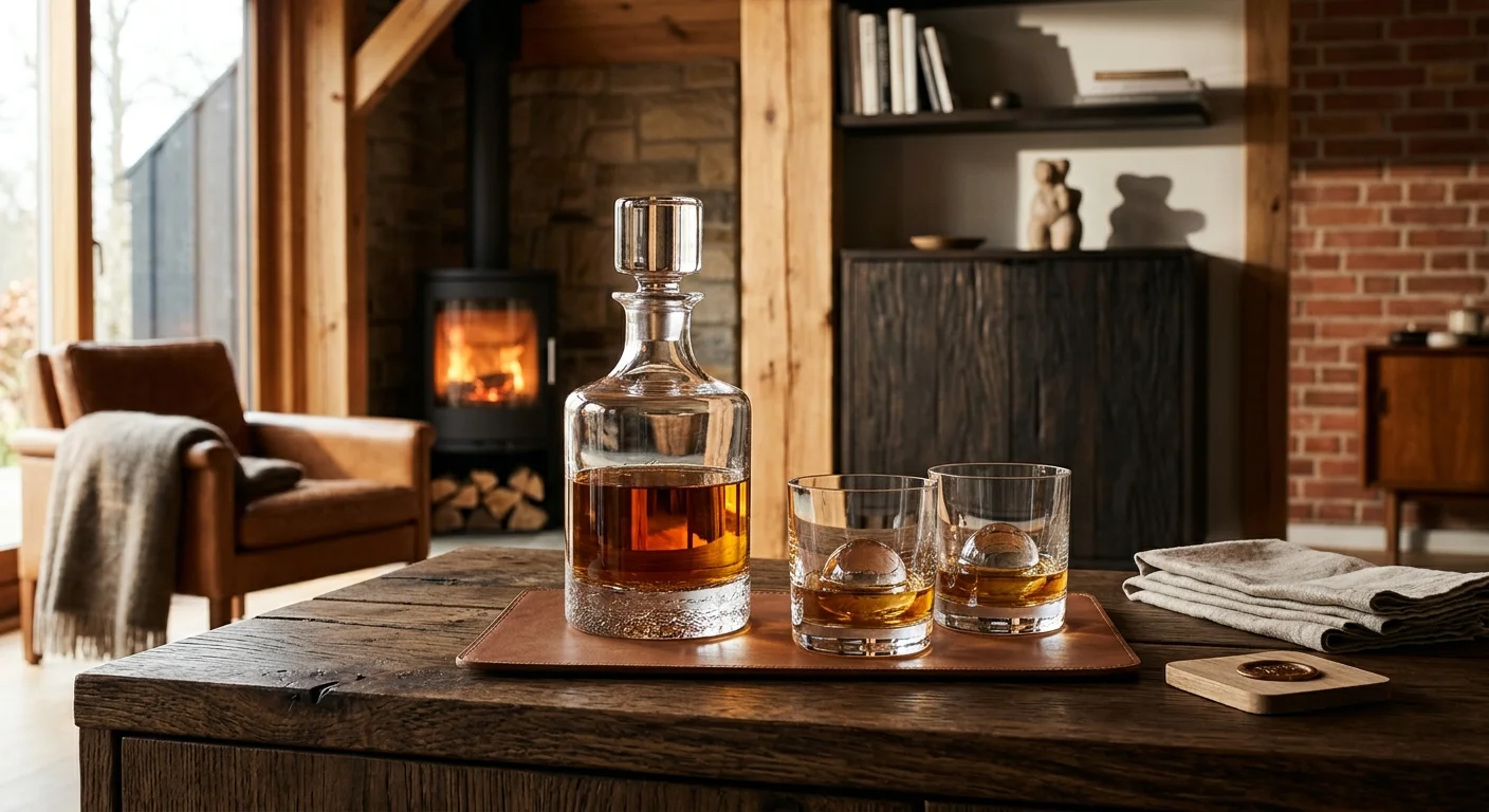 Whisky er den kategori der oftest lykkes til mænd der er svære at købe til. Et whiskysten-sæt (119 kr) holder drikken kold uden at fortynde den. En whisky smoker (225–300 kr) er et imponerende gadget der tilføjer røgsmag til cocktails. Et komplet karaffel-sæt (350–500 kr) er en klassisk gave der ser flot ud stående i vitrineskabet.