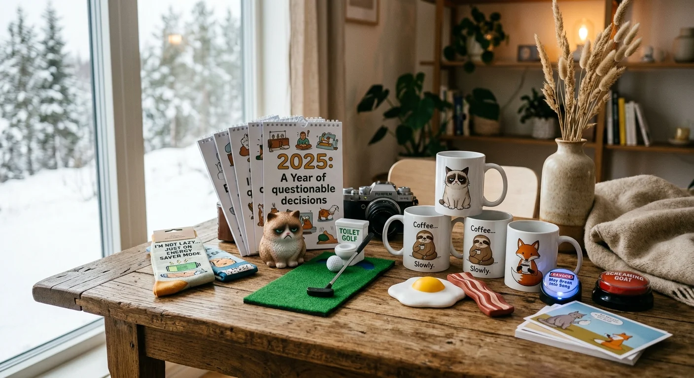 Firmafester og kollegagave-udveksling er det perfekte sted til sjove gaver. Hold dig under 150 kr, vælg noget der ikke er for personligt, og undgå gaver der kan misfortolkes. Stresslegetøj, sjove krus og mini-golf til toilettet er tidstestede valg der virker på tværs af aldre og personligheder.